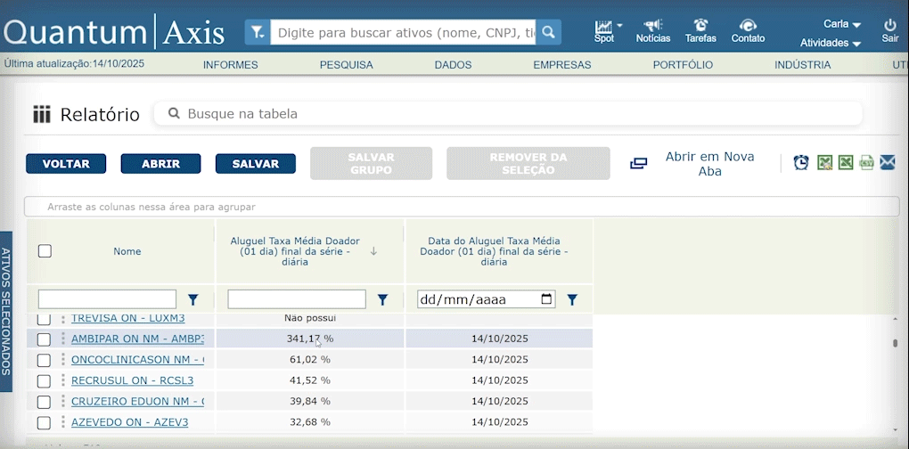 A Quantum disponibiliza no sistema dados sobre aluguel de todas as ações disponíveis na B3.
