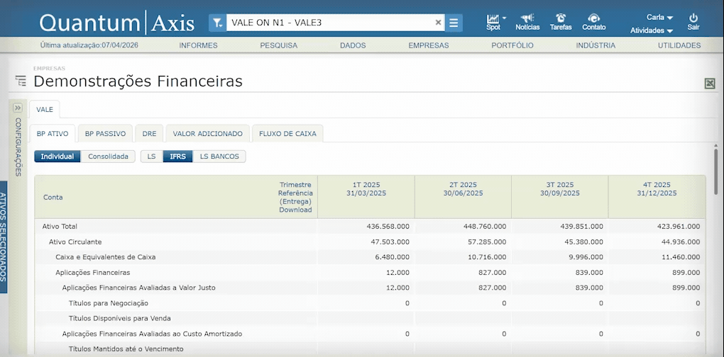 Na plataforma Quantum Axis, a área de Demonstrações Financeiras e Indicadores ajuda a estruturar essa leitura com mais fluidez. Desse modo, ela apoia comparações e recortes relevantes para o acompanhamento analítico.