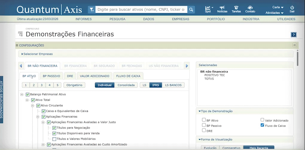 Na rotina profissional, isso depende de informações consistentes e replicáveis. Nesse ponto, bases padronizadas e visões consolidadas permitem estruturar históricos, pares e métricas com mais rastreabilidade.